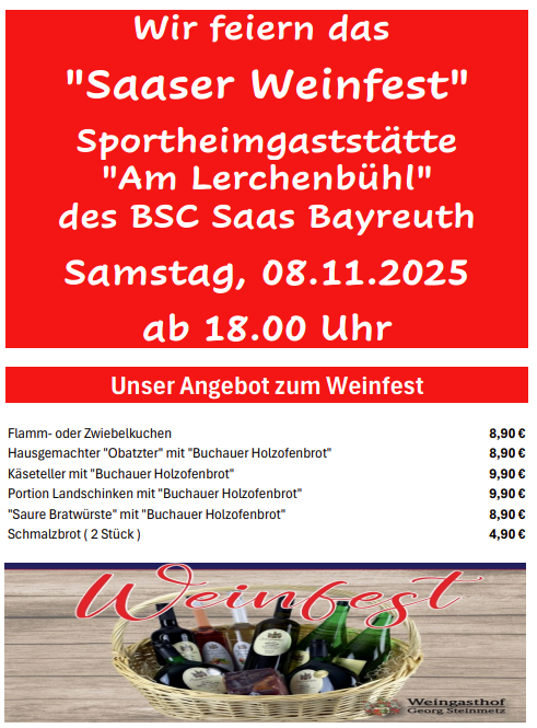 Samstag, 08.11.2025 ab 18 Uhr in der Sportheimgastätte „Am Lerchenbühl“